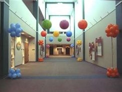 Malzemeler: Helyumlu büyük balonlar, renkli balonlar, bağlama şeritleri.